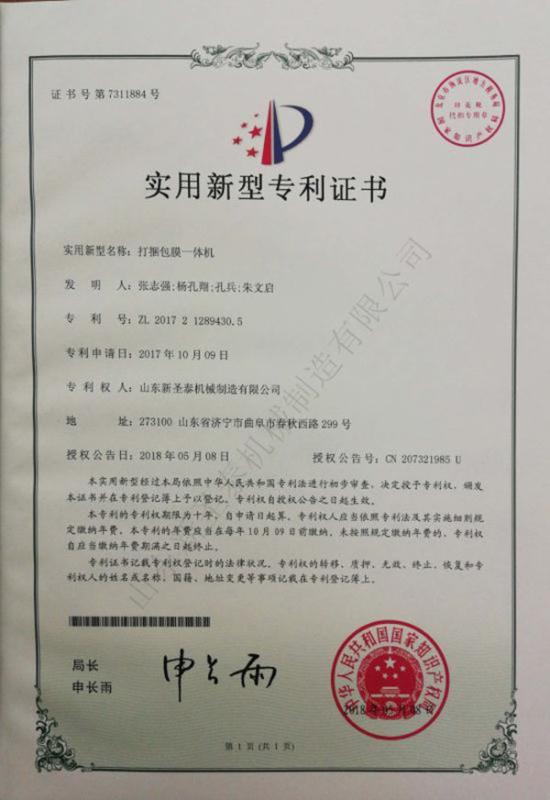 1)打捆包膜一體機(專利號201721289430.5)