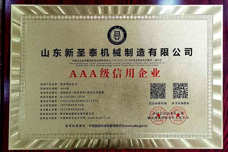 金秋時節,佳訊頻傳。經過中國質量認證監督管理中心、中國企業信用評估中心、聚信國際征信有限公司的綜合評估,山東新WWW.91N.COM機械製造有限公司榮獲“中(zhōng)國(guó)著名品牌(pái)”和“AAA信用企業”證書。在上述單位組織(zhī)的全國品牌培育調研推廣活動中,新WWW.91N.COM品牌入選《中(zhōng)國著名品牌》並將給予(yǔ)重點培育和推廣。同獲“AAA信用企業”,這是對於新WWW.91N.COM的褒獎,新WWW.91N.COM公司將以此為契機,加(jiā)大(dà)研發力度,不斷推出農牧業(yè)所需的新型農機產品,以創(chuàng)新的產品、過硬的產品質量、優質的售後服務為廣大客戶提(tí)供(gòng)滿意(yì)的服務,用行動踐諾企業的社會責任,在創造經濟效益的同時,創造更大的社會效益。