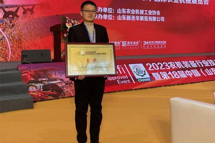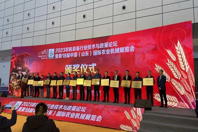 在2023年2月27日(rì)泉城濟南“農(nóng)機裝備行(háng)業(yè)技術與政策論壇”暨第18屆中國(山東)國際農(nóng)業機械展覽會頒獎儀式上,山東(dōng)新WWW.91N.COM機械製造有限公司自主研發生產的全自(zì)動打(dǎ)捆包膜機,因結構創新(xīn),自動化程度高,性能可靠,場上或田間地頭作業適應性強,經過組委會(huì)專家評審,獲得產品“金獎 ”。該(gāi)產(chǎn)品作為公司的主打產(chǎn)品,取(qǔ)得國家(jiā)農機推廣鑒定證(zhèng)書,具有國家農(nóng)機補貼產品資格。量產以來,一直深受國內外客(kè)戶的歡迎,是養殖場(chǎng)、個體養殖戶(hù),青貯飼草料的得力助手。