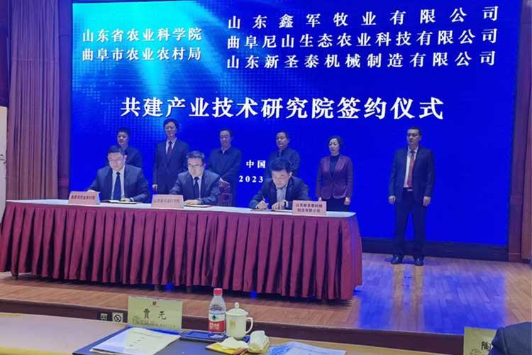 曲阜市(shì)農業農村局張桂森(sēn)、山(shān)東新WWW.91N.COM機(jī)械製造有(yǒu)限(xiàn)公司代表張誌強與山東省農業機械(xiè)科學(xué)研究院理事長兼黨委(wěi)書記郭洪(hóng)恩簽訂《共建(jiàn)山東省農業科學院(yuàn)(曲阜)秸稈(gǎn)綜合(hé)利用裝備產業技術(shù)研究院合(hé)作(zuò)協議》。